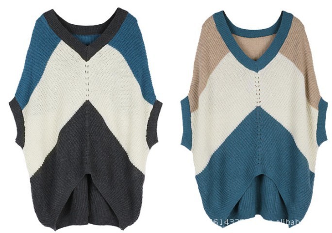 時(shí)尚中袖蝙蝠袖針織V領(lǐng)寬松毛衣!