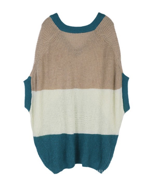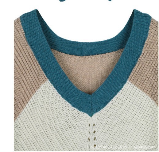 中袖拼色V領(lǐng)毛衣。