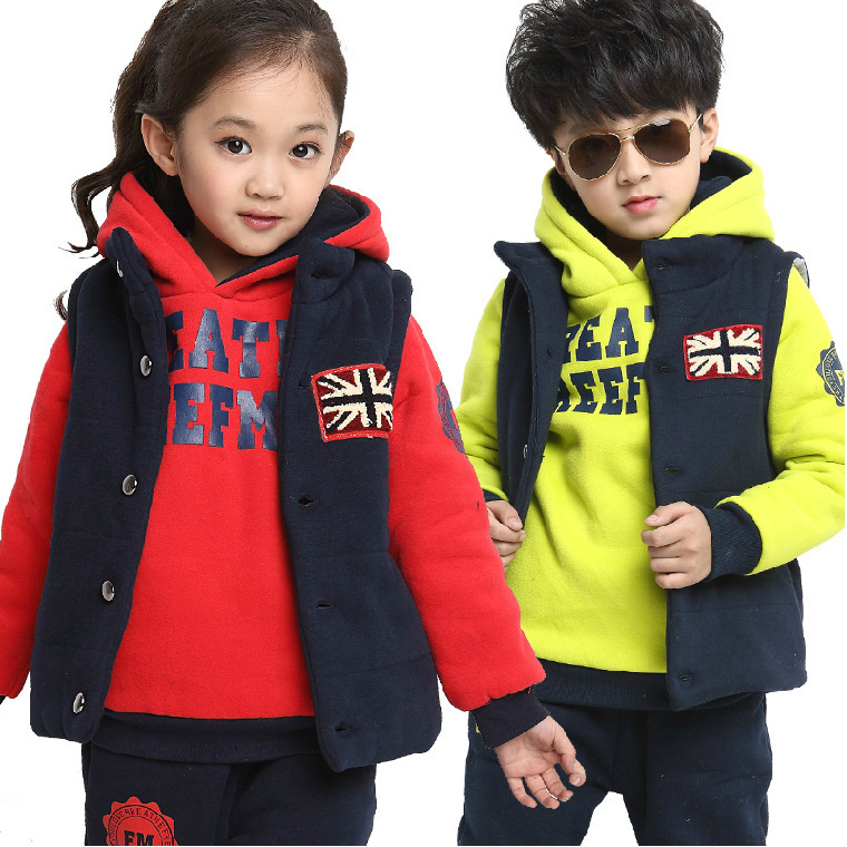 冬款韓版童裝 童套裝男童女童兒童加厚衛(wèi)衣三件套衛(wèi)衣套裝批發(fā)價¥85.00
