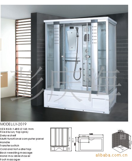 ●進(jìn)水管道接口在淋浴房背板水龍頭位置后面.電源接口在淋浴房頂端