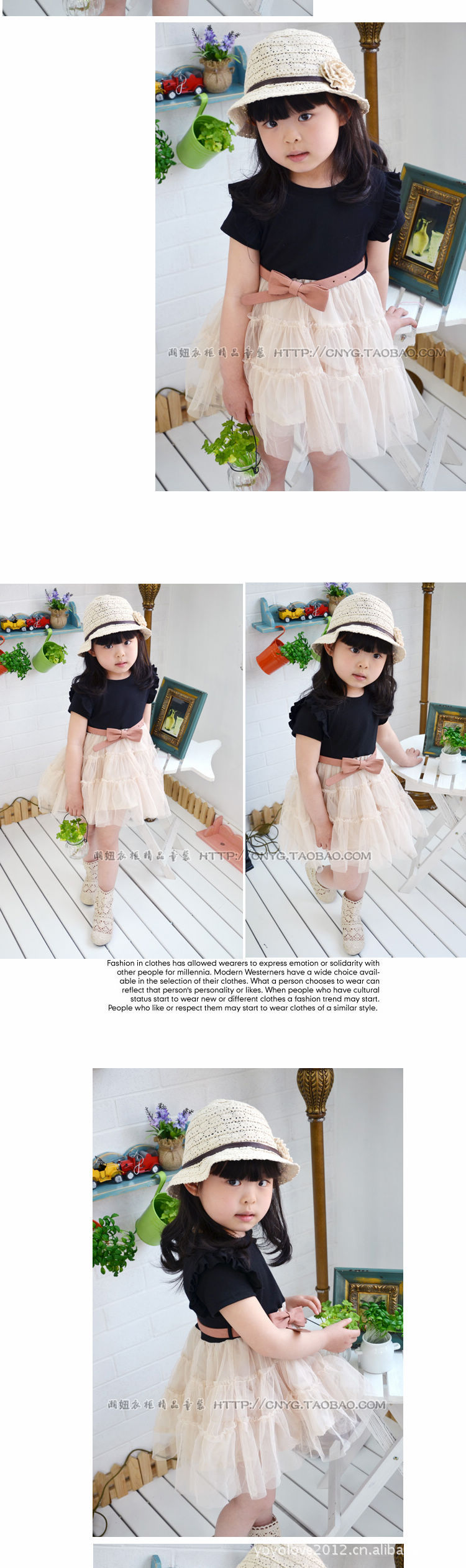 韓T&Z 爆2012女童夏 公主小屋 潮妞 木耳袖腰帶蝴蝶結(jié)網(wǎng)紗連衣裙