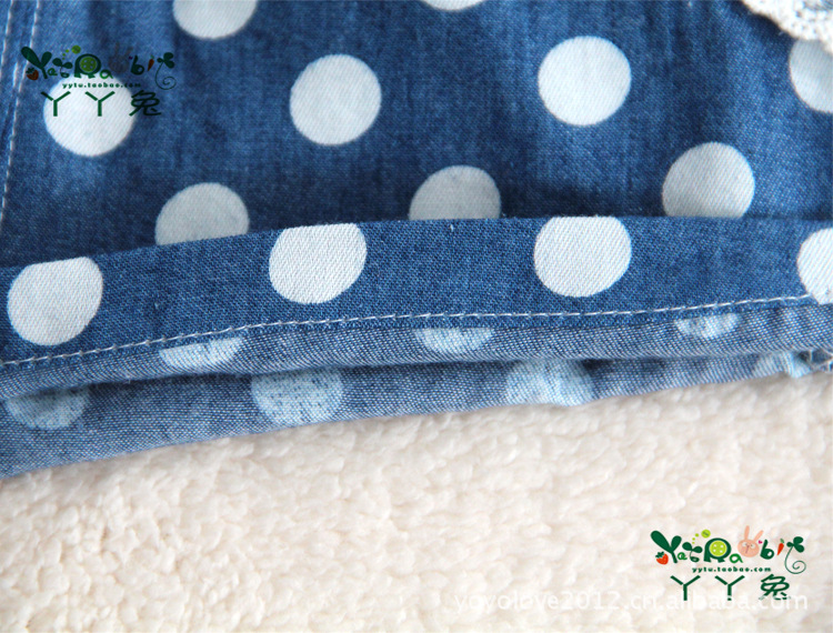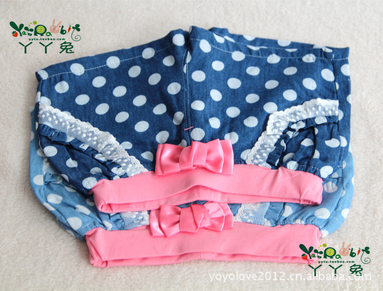 2012女童夏款 湖州丫丫兔 蕾絲邊牛仔色軟面料波點短褲 兩色入