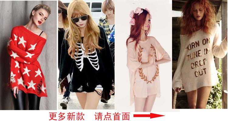 2013秋卡通亮片寬松套頭毛衣 韓國外貿原單羊毛衫 大碼外套針織衫