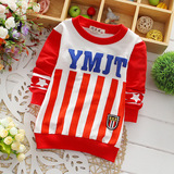 15春季新款童T恤 豎條紋字母純棉針織小毛圈童T恤RMB:17.00