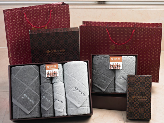 品5:方巾3條 產(chǎn)品明細(xì):貨號:T001方巾 34×34cm T002面巾 78×34cm T003浴巾140×70cm 顏色:深灰、淺灰、米白材質(zhì)說明:100%棉設(shè)計(jì)說明: 初看,冷酷的灰色方塊,層層疊疊,豪情萬丈,卻不見那舞動的細(xì)線字母,正在諾大的舞臺得意地跳,帶著寫意的笑。產(chǎn)品說明: 這款產(chǎn)品在具備潔麗雅毛巾禮品的優(yōu)質(zhì)、環(huán)保的優(yōu)良品質(zhì)的同時,簡單中透露出來的不俗品味的產(chǎn)品設(shè)計(jì)在產(chǎn)品本身有個很好的體現(xiàn),是一款低價位、高品位的產(chǎn)品!非常吸引消費(fèi)者的眼球!