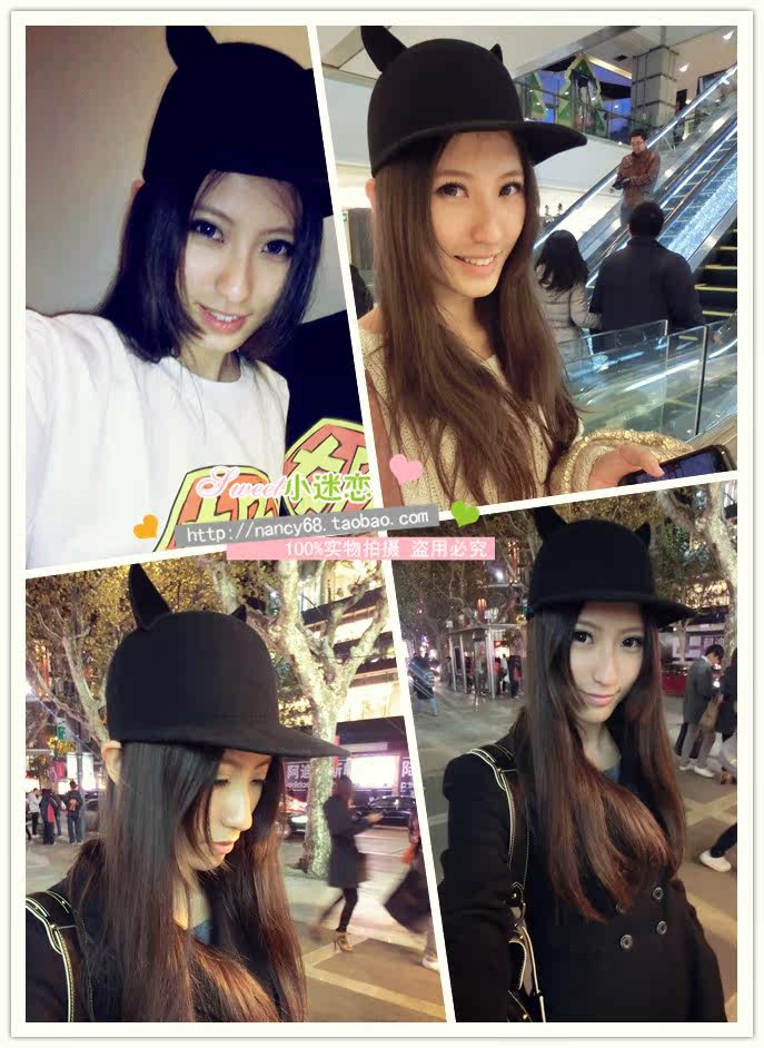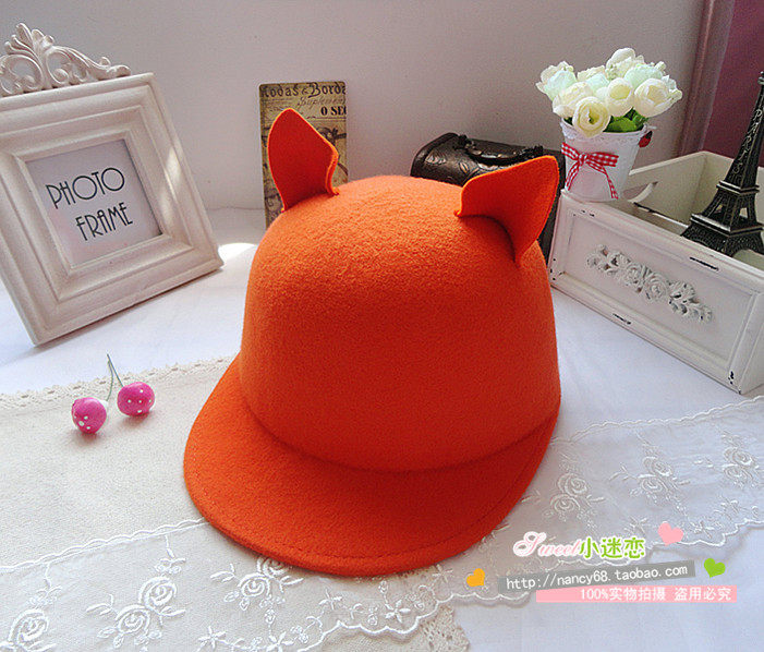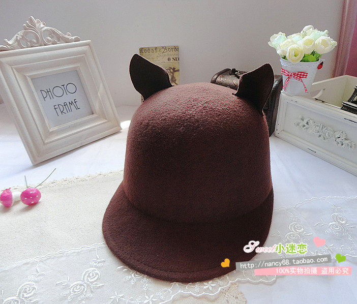 MZ854歐美訂單外貿(mào) 2012新款街頭風(fēng)小惡魔 耳朵 純羊毛呢 馬術(shù)帽
