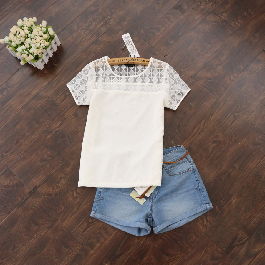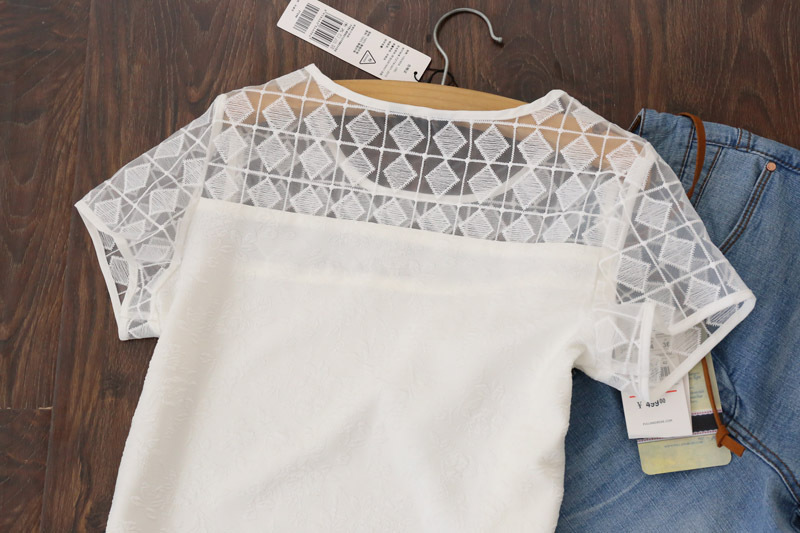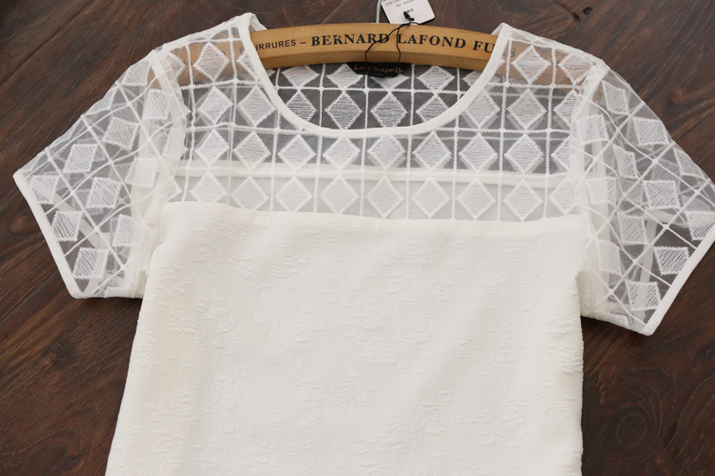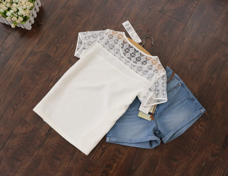 精致的肩部半鏤空歐根紗格子 泡泡袖 甜美可愛