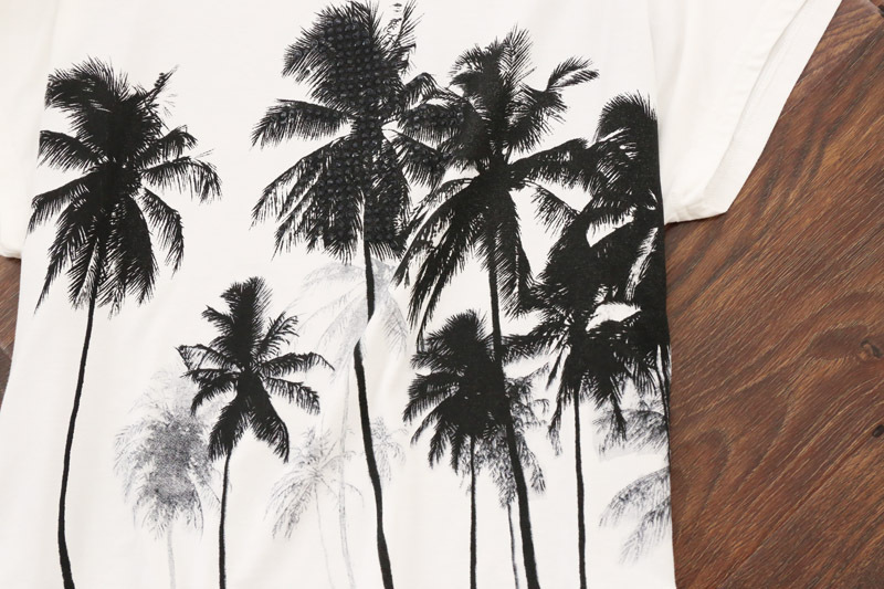 燙鉆黑白椰樹(shù)印花 有氣質(zhì)不俗氣
