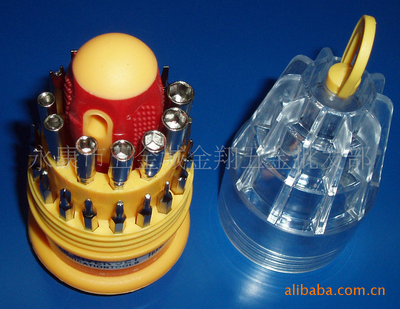塔形包裝組盒,30種可更換批頭。星型批頭: T4 T5 T6 T7 T8 T10 T15 T20 套筒頭子: 2.5 3 3.5 4 4.5 5 6一字批頭:1.0 1.5 2.0 2.5 3.0 4.0 十字批頭:PH00 PH0 PH1 PH2 其它異型批頭見圖