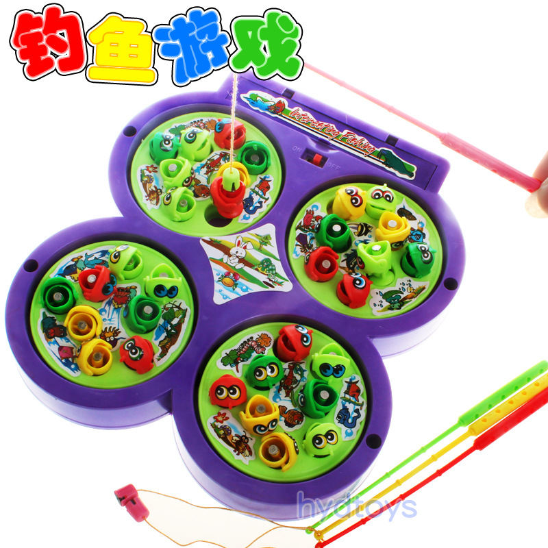 此款釣魚是有音樂的,當(dāng)開關(guān)開啟時,旋轉(zhuǎn)盤就會帶動小魚們開始旋轉(zhuǎn),同時又音樂伴奏!產(chǎn)品配備多根釣魚竿,可以同時多人玩耍!
