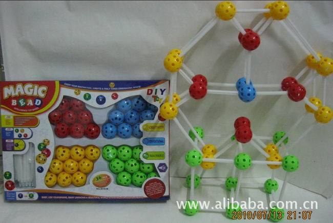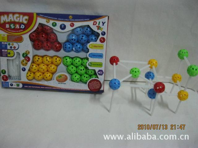 桿可以插入積木球上的任意的小孔。這款玩具可以發(fā)揮孩子的想象力,創(chuàng)造一個(gè)真正的立體空間!