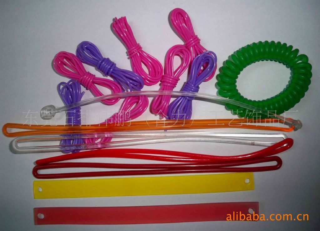 色彩豐富,多種多樣的膠繩,可做實(shí)心,空心,扁,異形等、材質(zhì)可做PVC/EVA/PU,PE等各種材質(zhì),規(guī)格齊全,可做透明有色效果,可加銀粉,金蔥,夜光,UV等.產(chǎn)品環(huán)保,提供原料環(huán)保證明.