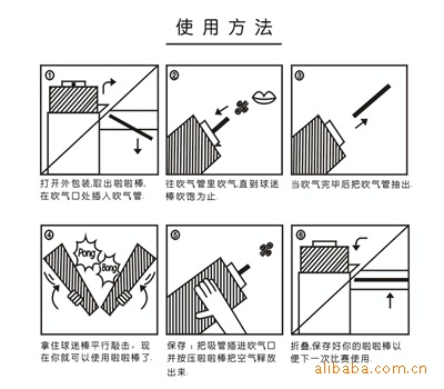 1.打開外包裝,取出歡呼棒,在吹氣口處插入吹氣管。