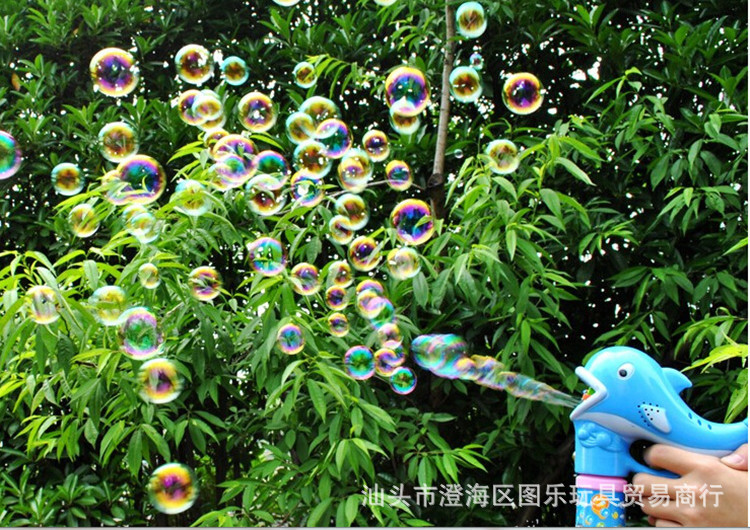 2--新的泡泡槍次使用時(shí)要扣動(dòng)扳機(jī)直至泡泡水從噴口處流出才可以,然后再打泡泡就會(huì)出來了。
