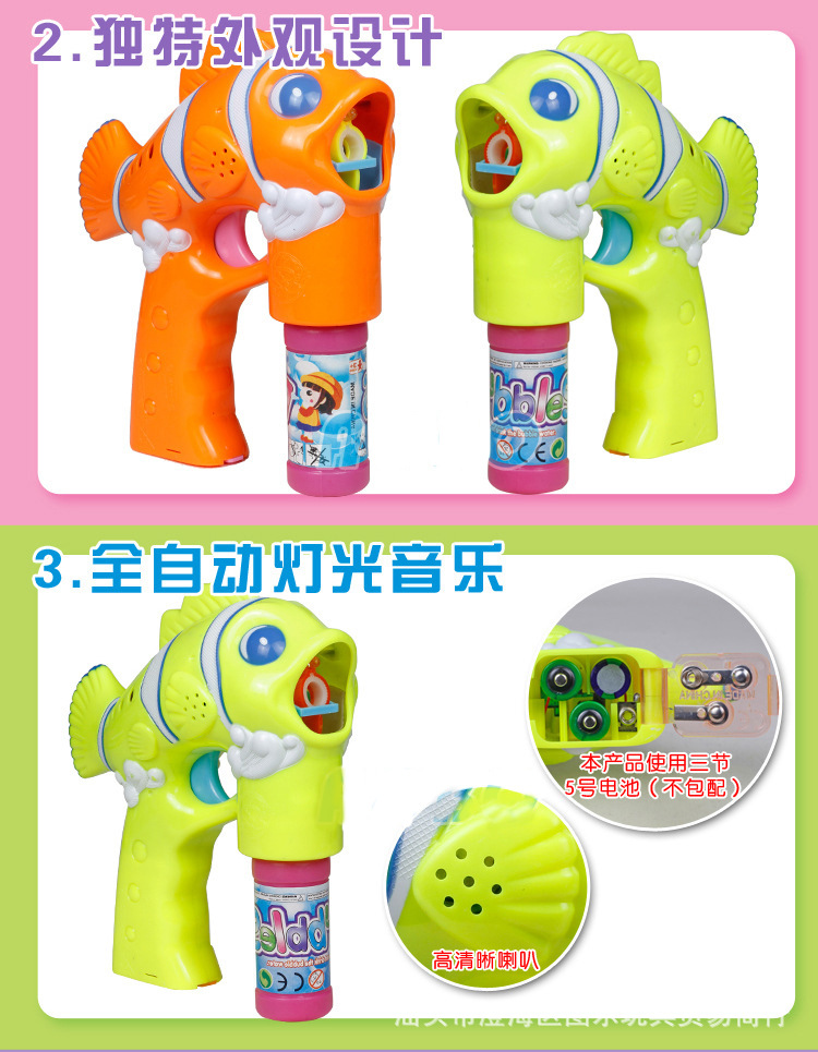兒童電動(dòng)泡泡機(jī) 全自動(dòng)音樂燈光實(shí)色小丑魚泡泡槍玩具 夏季熱銷