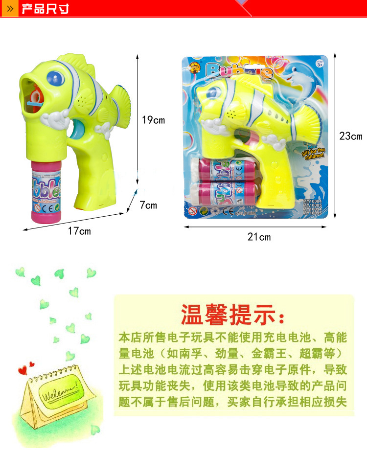 3--泡泡槍使用過程中請不要傾斜或倒置,因?yàn)榕菖輼寚娍谔帋в幸粋€(gè)余水回收裝置,如果傾斜幅度過大或倒置,泡泡水會(huì)流出來的。全自動(dòng)的泡泡槍都是這樣的,請買家不要誤會(huì)是質(zhì)量有問題。