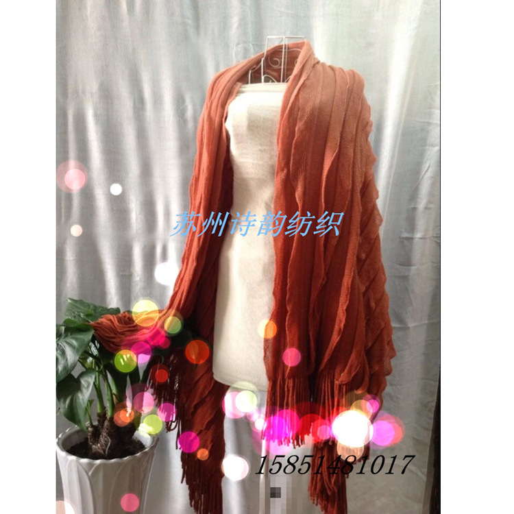 產(chǎn)品名稱:經(jīng)編吊染百葉巾(扇形披巾)