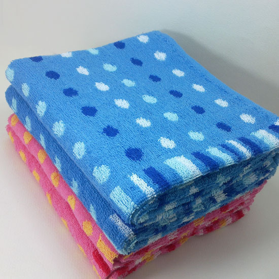 批發(fā)孚日外貿(mào)尾單毛巾紅藍(lán)小圓點條紋純棉提緞毛巾