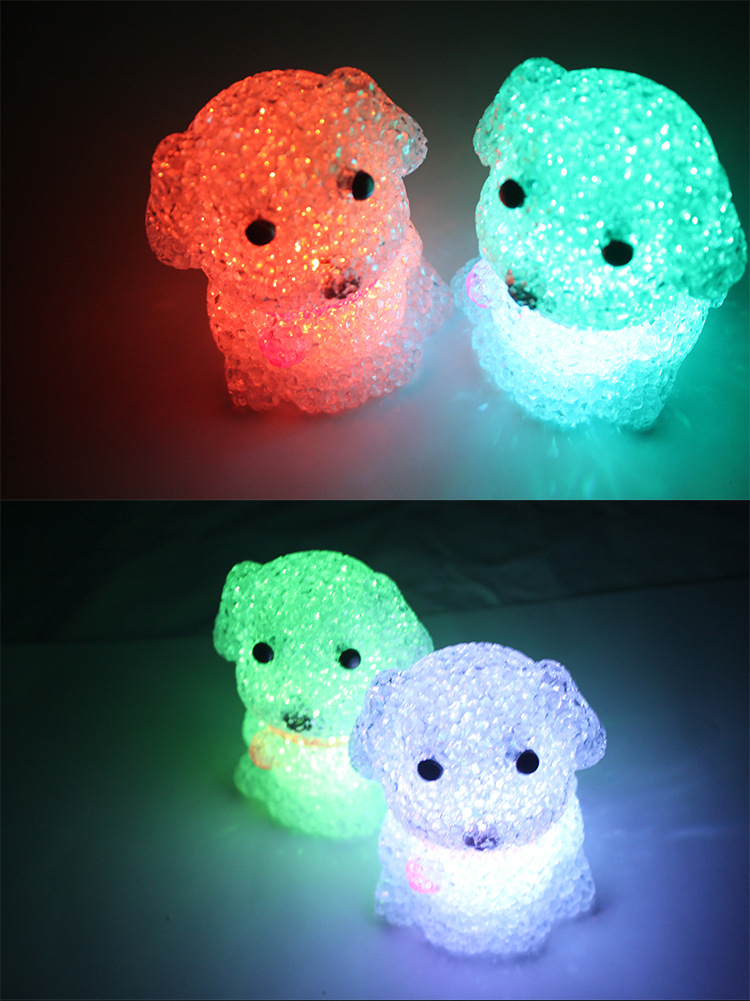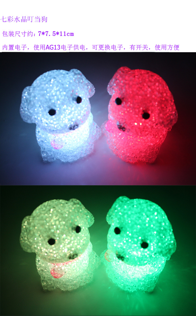 七彩水晶叮當(dāng)狗 水晶顆粒小夜燈 led變色水晶燈批發(fā)