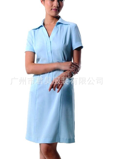 定做美容服:提供淡藍色V領(lǐng)美容服連衣裙定做,品質(zhì)保證