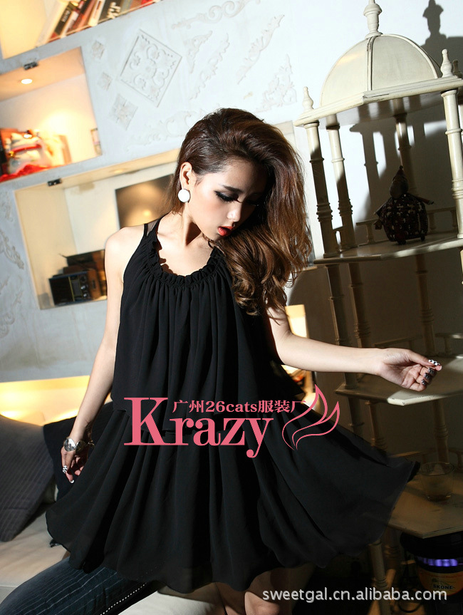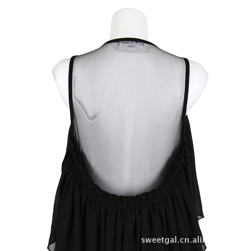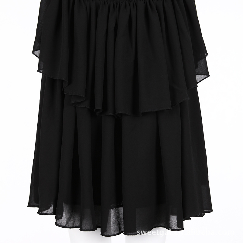 【時尚元素】層疊的大衣擺,柔軟輕盈的雪紡裙嫵媚而嬌貴!小高腰薄紗大裸背設(shè)計,呈現(xiàn)女人完美線條,浪漫而性感。利落的黑色,一款精致的雪紡裙,又能讓嬌柔盡現(xiàn)。