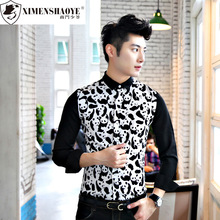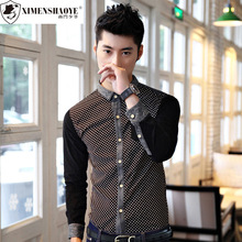 夏季新品修身男長袖襯衫韓版?zhèn)€性夜店修身英倫潮流男裝襯衣