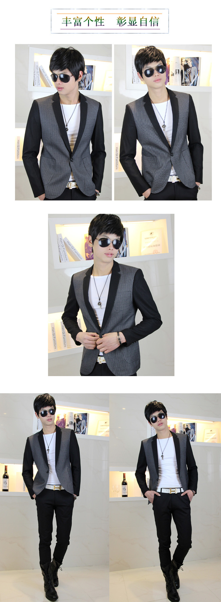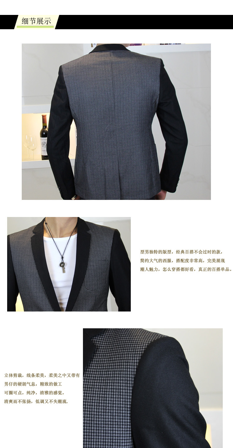 2013秋裝休閑格子西服 男士時(shí)尚修身西服上衣 淘寶貨源