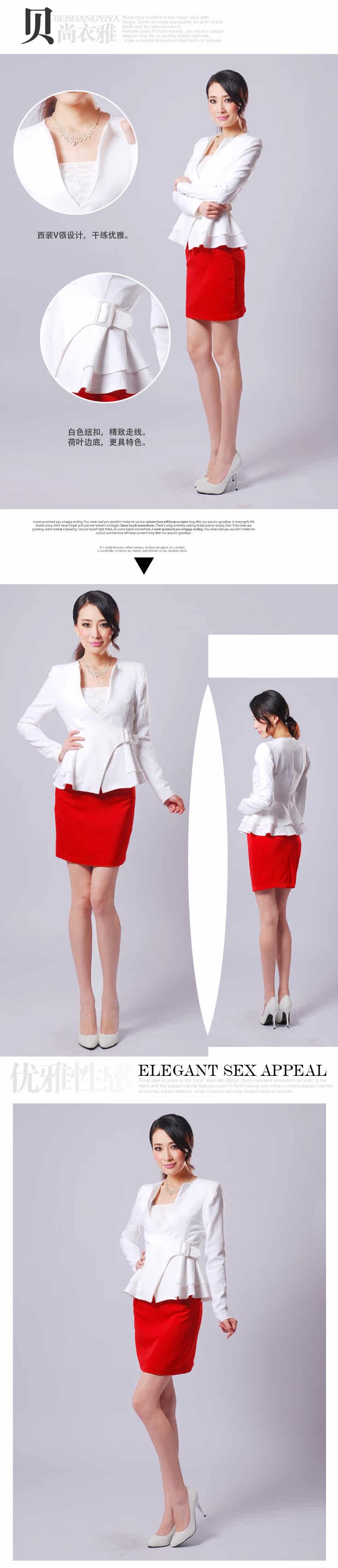 貝尚衣雅 2012秋冬新款韓版收腰修身荷葉邊顯瘦白色百搭女小西裝