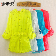 1603新款空調(diào)衫 長(zhǎng)袖防曬衫船錨防曬衣透明款薄外套女沙灘防曬服