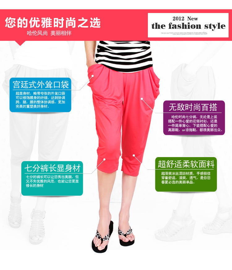 新款女士七分褲哈倫褲質(zhì)量非常不錯(cuò),面料非常的考究,我們采用的是牛奶絲,非常很順滑。春夏穿著保證非常舒服,只要你敢批發(fā),還會(huì)再來批發(fā)的!