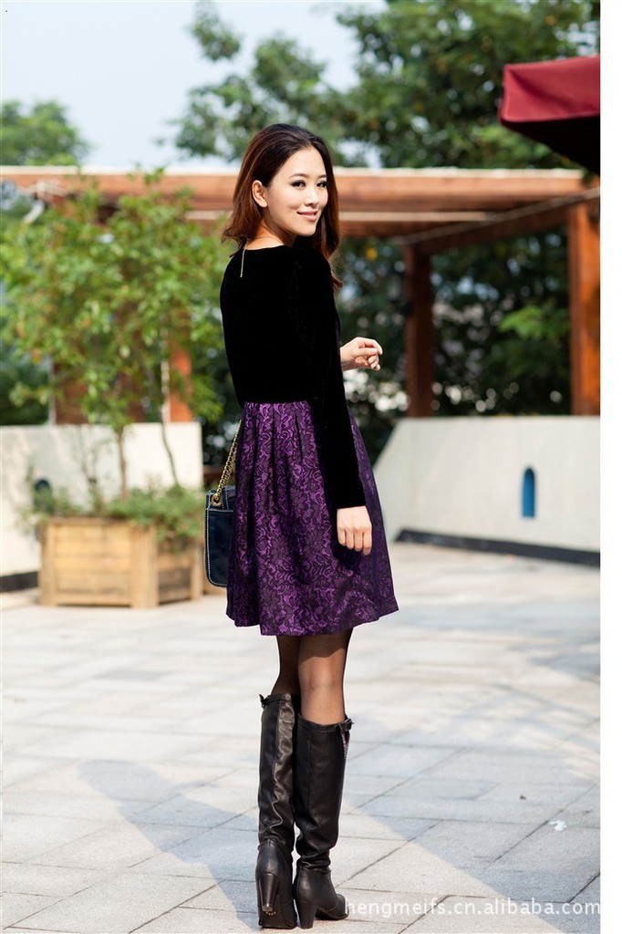 2011新款秋裝,韓式高腰淑女印花假兩件套長袖連衣裙 招網(wǎng)絡(luò)代銷