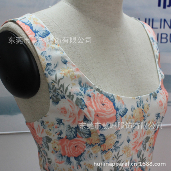 韓版小禮服 純棉斜紋印花背心裙緊身連衣裙 有腰帶拉鏈