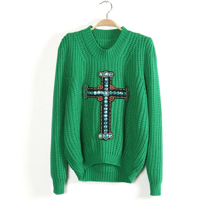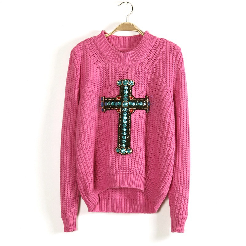 此款衣衣采用毛線面料、柔軟細(xì)膩的親膚感、透氣舒適、面料彈性大、豐滿的MM也可穿著的哦、身合身版型、前短后長手工釘珠十字架泡泡袖百搭套頭毛衣、靚麗動人、甜美可愛、雅致秀出玲瓏曲線美感、窈窕迷人、洋氣百搭、無論是甜美系還是休閑風(fēng)的粉絲們、這款無疑是你們秋冬百搭的選擇單品、推薦喲~~