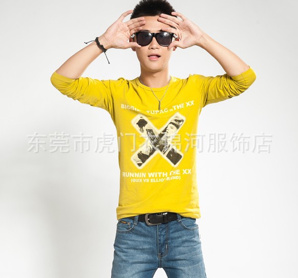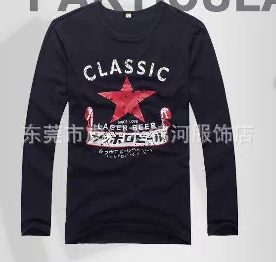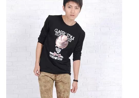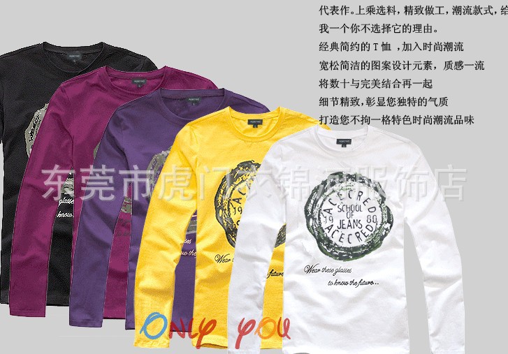 【款式】:2013秋裝多款多色男式印花長(zhǎng)袖T恤。