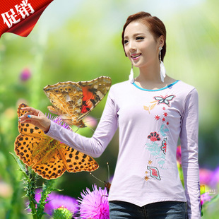 廠家直銷新款品質(zhì)民族風(fēng)長袖T恤彈力純棉繡花女式打底衫特價 促銷29.0 ¥29.0熱銷0