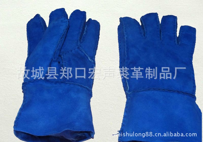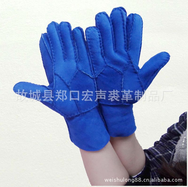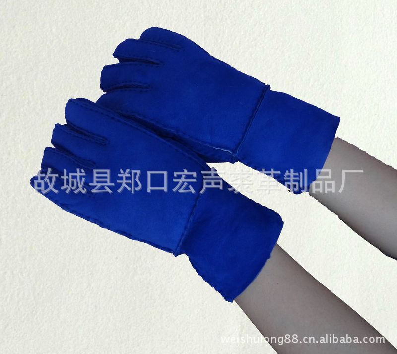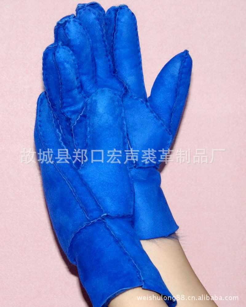 高級定制 冬季保暖時尚兼?zhèn)涓哔F寶藍色羊皮毛一體手套 巨劃算啦