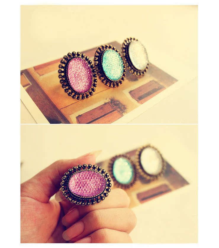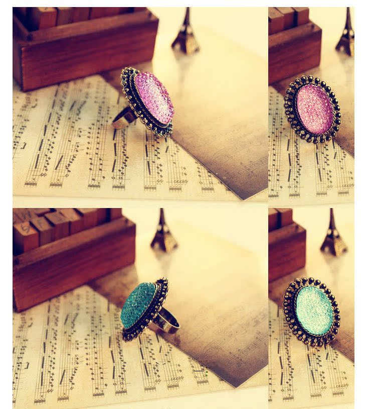 義烏韓版?zhèn)€性時尚復(fù)古飾品批發(fā) 橢圓鏤空寶石戒指批發(fā)