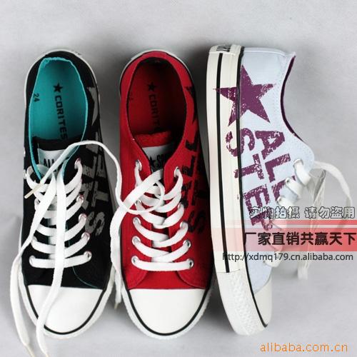 帆布鞋女鞋批發(fā)女款帆布鞋低幫系帶女布鞋匡威版帆布鞋2011新款