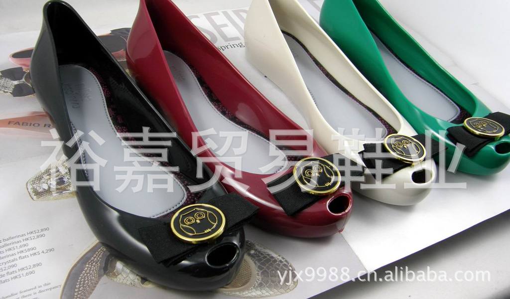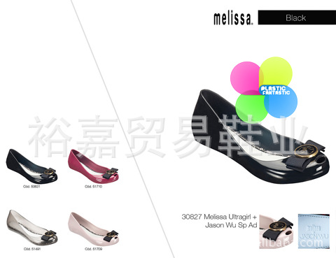 Melissa Ultragirl Jason Wu系列果凍鞋有平底芭蕾鞋和露趾高跟鞋兩款,每款分別有黑色、裸色、酒紅色、透明灰四種顏色。其中,平底芭蕾果凍鞋上還飾有超級(jí)萌的吳季剛 (Jason Wu) 貓頭鷹Logo蝴蝶結(jié);而露趾高跟鞋頭的金屬鞋飾則是來源于吳季剛 (Jason Wu)2011秋冬女裝系列的元素;每一款鞋的內(nèi)里細(xì)節(jié),都還裝飾有性感的黑色蕾絲鑲邊,一款透明灰芭蕾鞋更是全部飾以蕾絲裝飾。