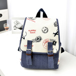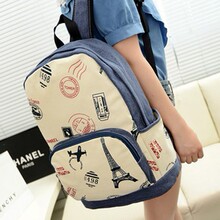 混批英倫學(xué)院風(fēng)鐵塔印花雙肩包背包書包印章印花帆布雙肩包女批發(fā)