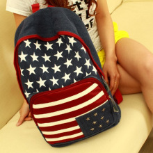 新款英倫五星國(guó)旗潮男雙肩包背包書包鉚釘條紋帆布雙肩包女包批發(fā)