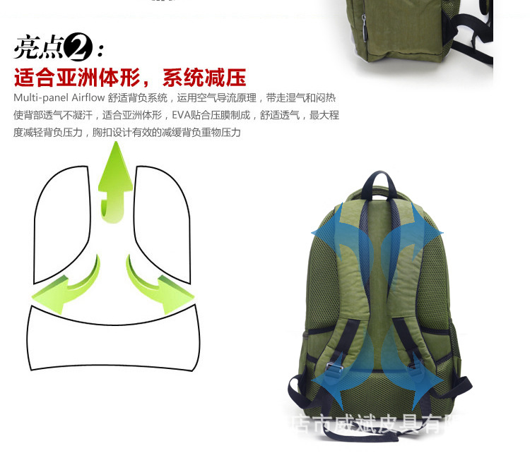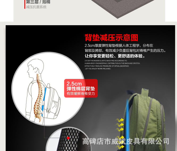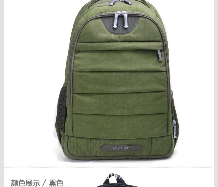 【包包特點】舒適的流水曲線型肩帶,能有效的起到防滑落的作用。厚軟的海綿結(jié)構(gòu)能有效的緩沖外力對肩部,腰部,尾椎部的壓迫,無論您是出差,旅行,還是日常背帶電腦或其他物件,都能很好的保護您的身體及物件不受損傷。肩帶與包身的寬面積自然縫合,完全解決的普通背包肩帶縫合處易于開裂的弊端。