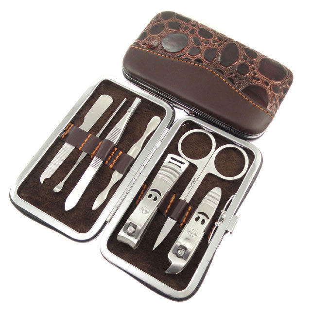 棕色花紋精致修甲套裝 鎢鋼指甲剪 六件套 可印logo