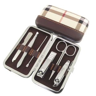 美甲工具套裝|碳鋼八件指甲刀|格子紋 指甲刀套裝 可印logo