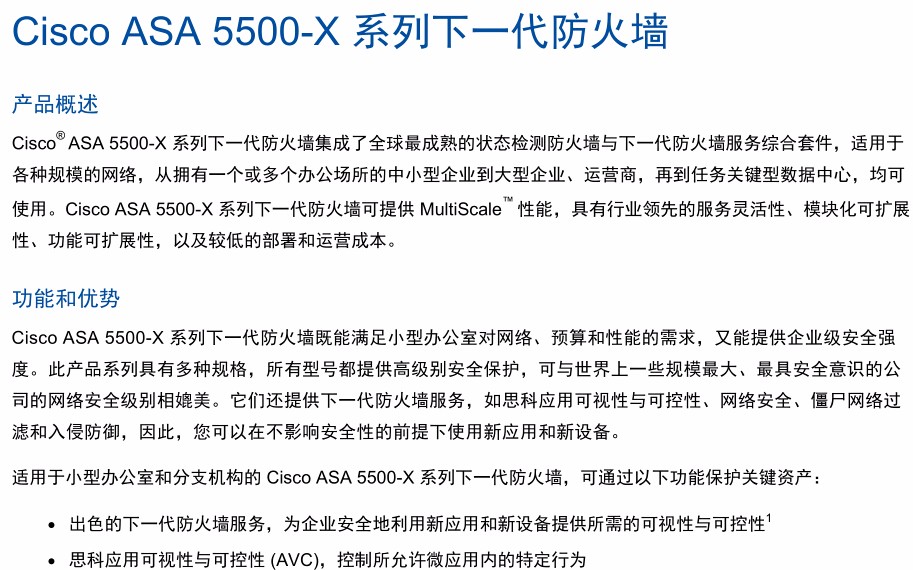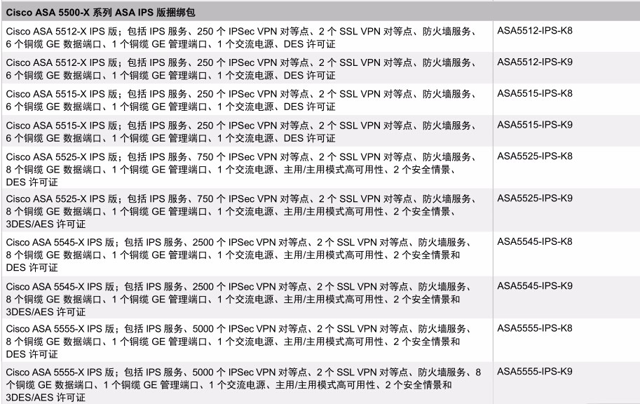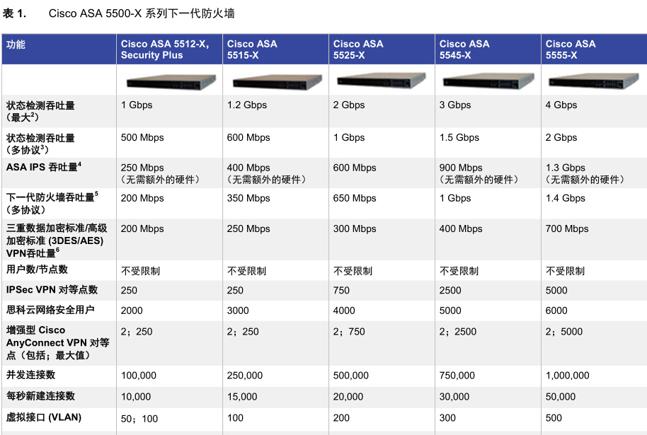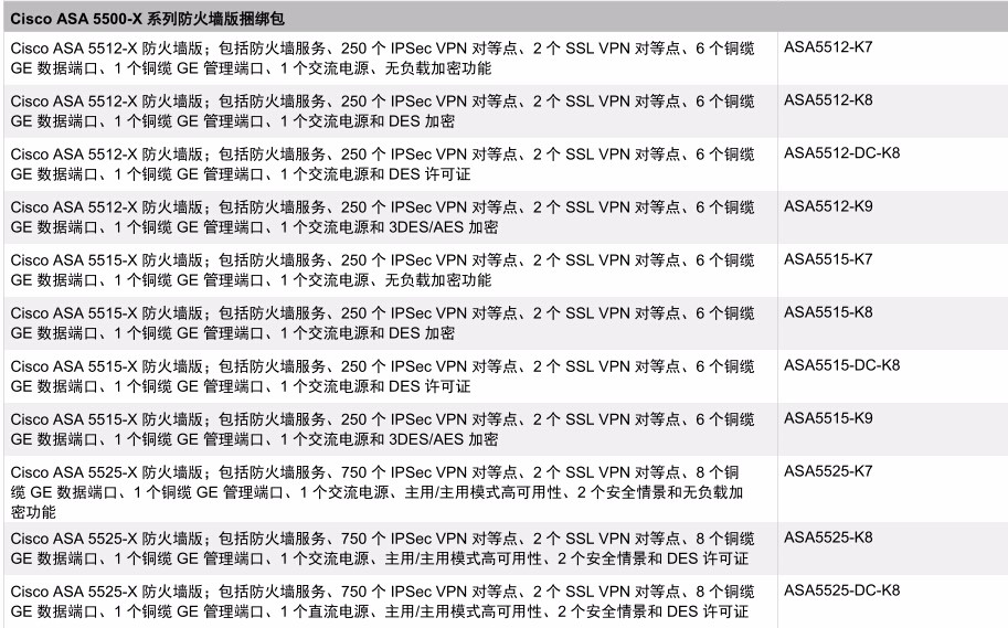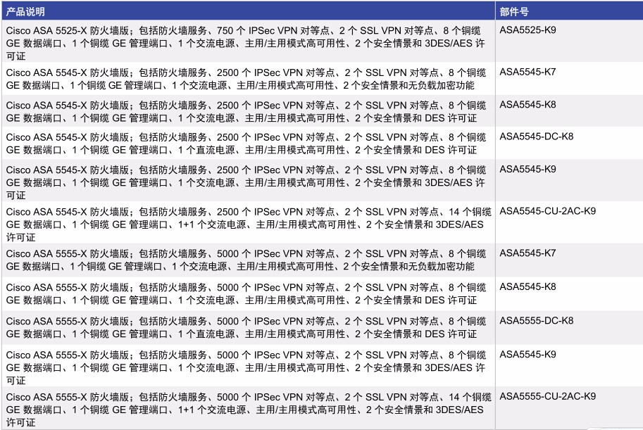 Cisco ASA 5525-X 防火墻版;包括防火墻服務(wù)、750 個 IPSec VPN 對等點、2 個 SSL VPN 對等點、8 個銅纜GE 數(shù)據(jù)端口、1 個銅纜 GE 管理端口、1 個交流電源、主用/主用模式高可用性、2 個安全情景和 3DES/AES 許可證 并發(fā)連接數(shù)500,000 狀態(tài)檢測吞吐量:2Gbps,多協(xié)議狀態(tài)檢測吞吐量:1Gbps,IPS吞吐量:600Mbps 8個GE接口