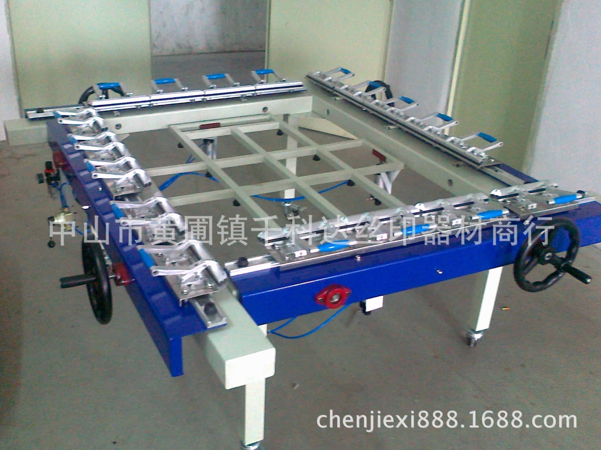 本機(jī)的優(yōu)勢:帶減力裝置的拉網(wǎng)機(jī),只需要輕輕的拉力就可達(dá)30牛頓以上.以上使用鏈輪,鏈條,絲桿傳動特性,可按照網(wǎng)布大小和鋁框的大小變換繃網(wǎng)架的尺寸;收循,擴(kuò)大繃網(wǎng)架的尺寸.操作定位繃網(wǎng)平行移動不變形的好處,該機(jī)是制作廣告等大型網(wǎng)版和批量制版的理想機(jī)械.