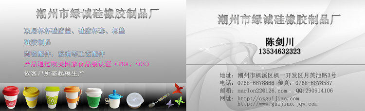 本公司是硅膠制品、硅膠產(chǎn)品、陶瓷配件、五金不銹鋼配件、硅膠蓋與手把、硅膠杯套等產(chǎn)品專(zhuān)業(yè)生產(chǎn)加工的私營(yíng)獨(dú)資企業(yè),公司總部設(shè)在廣東省潮州市楓溪區(qū)。