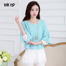 2014秋季新款女式針織衫 甜美蕾絲拼接七分袖針織衫 套頭針織衫60.00