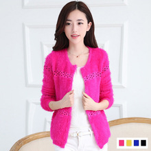 2014秋冬新款 韓版女式針織開衫 條紋馬海毛馬卡龍毛衣 女裝外套45.00