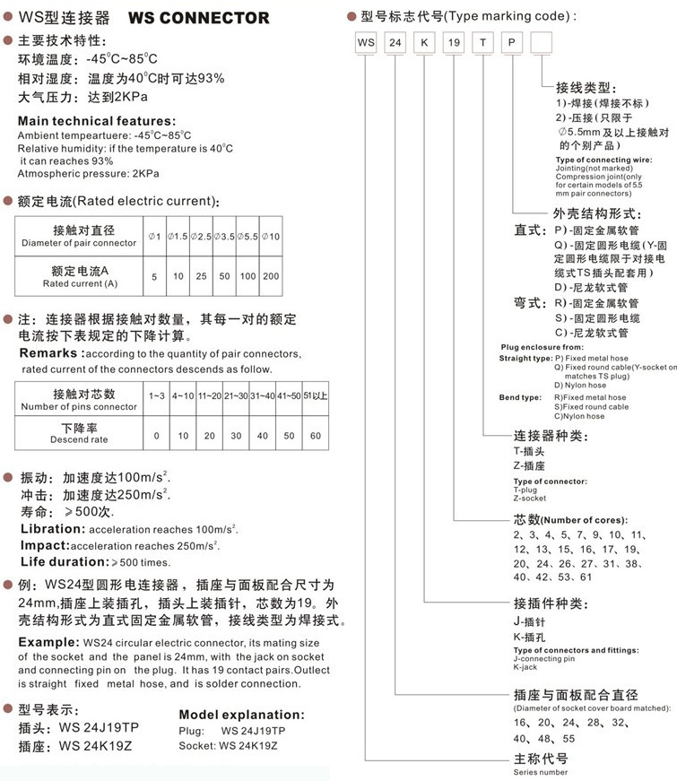 所有產(chǎn)品均配套專用安裝螺絲,WS20以上方形插座配防塵蓋。接觸點全部為鍍金。